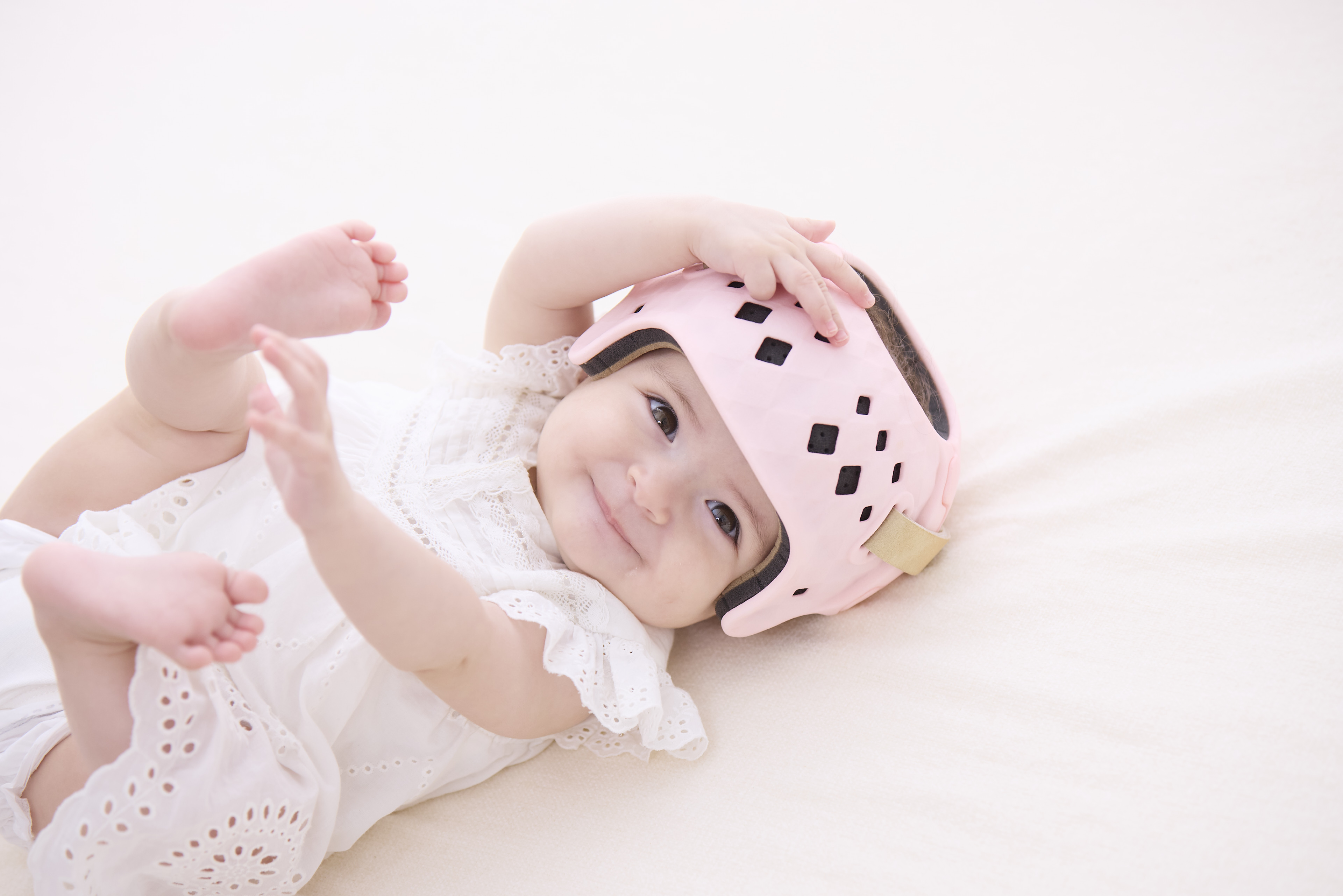 一般的に、首すわりが始まる3か月ごろからヘルメット治療を開始するのが理想的です。治療時期は早ければ早いほど効果が高いと言われています。