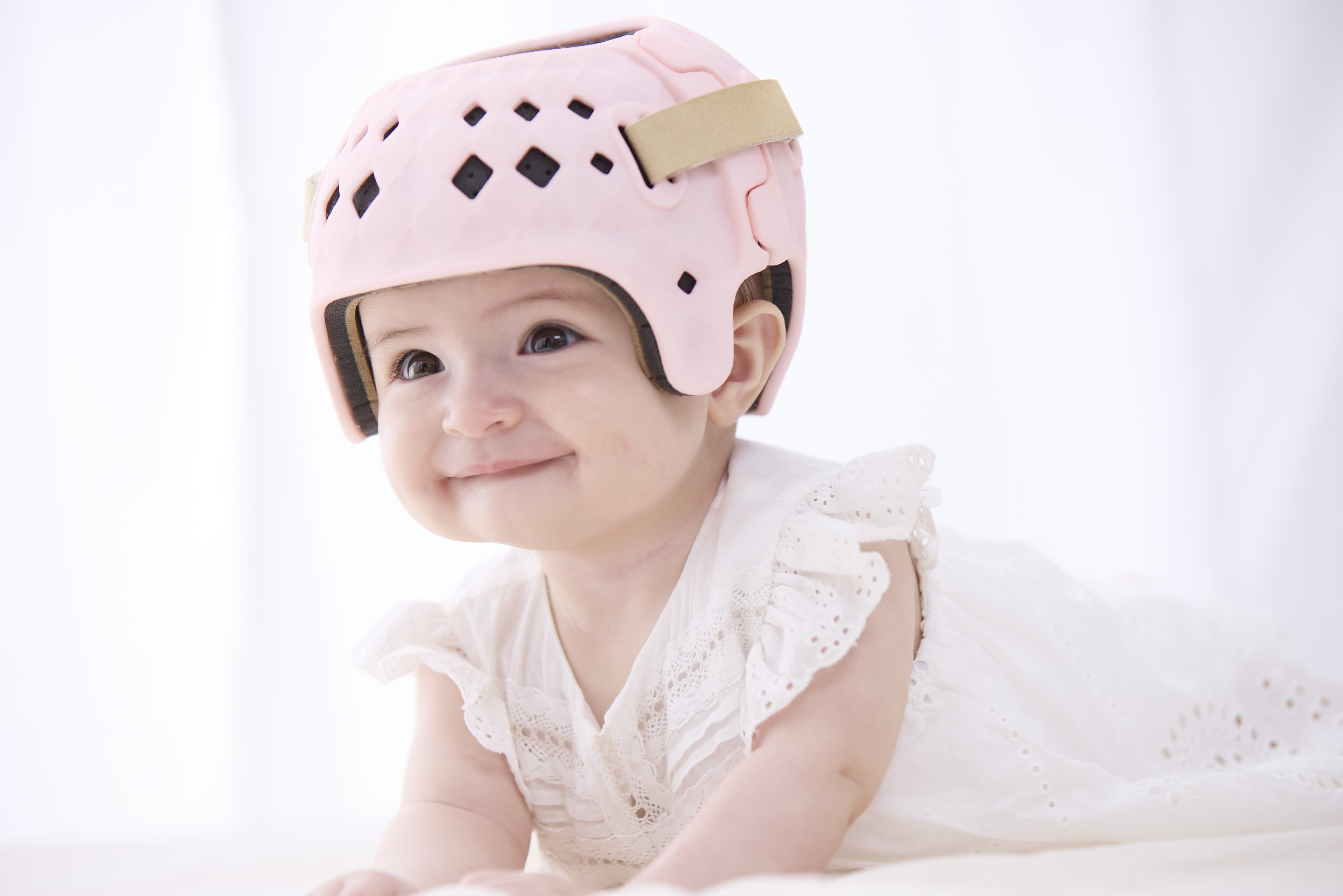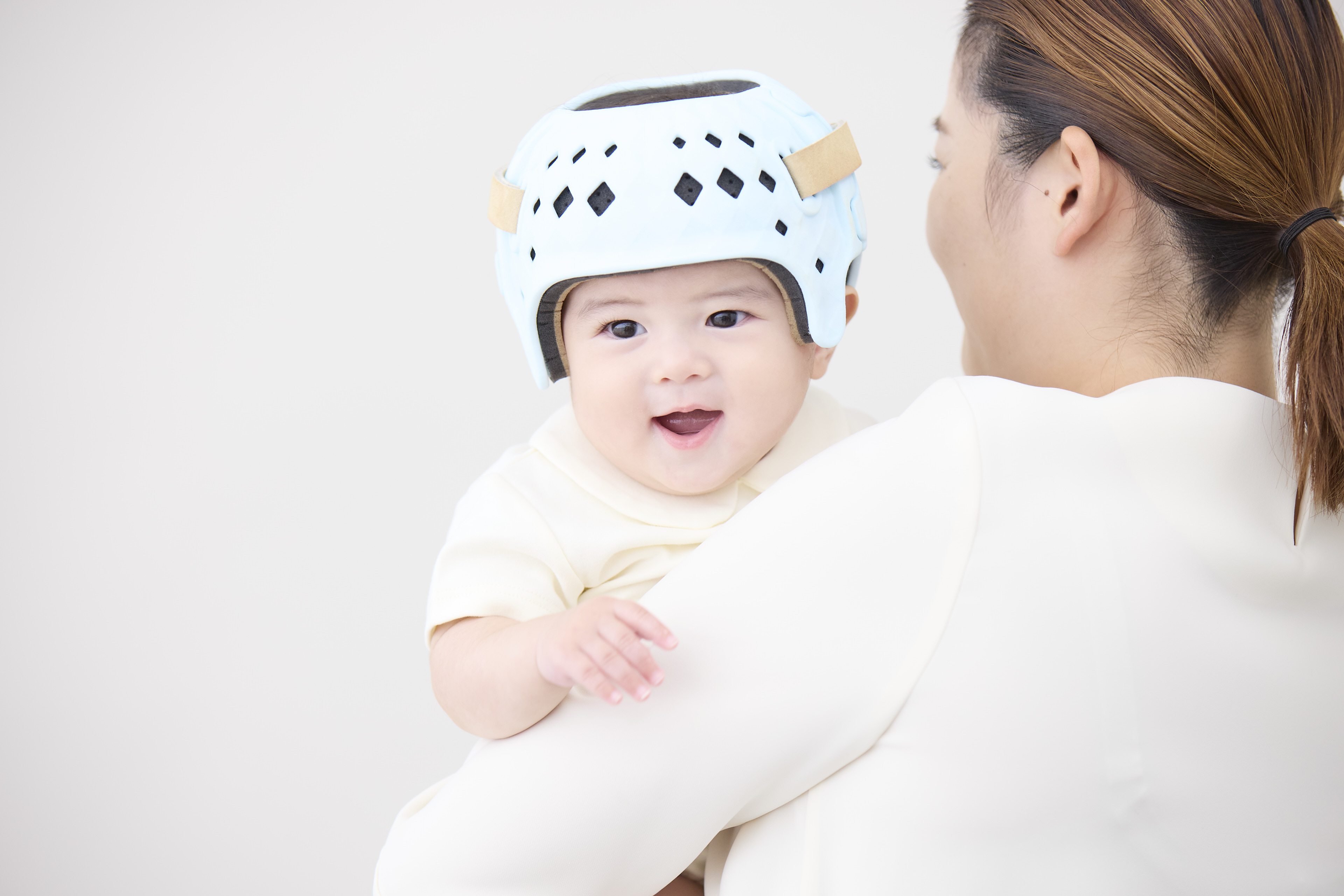 赤ちゃんの頭は非常に柔らかく、向き癖や寝る姿勢によって、頭のかたちにゆがみが生じることがあります。赤ちゃんの頭の変形を、成長に合わせて整えていく方法が「ヘルメット治療」です。専用ヘルメットを装着して頭の成長を誘導することで、より自然な丸みのある頭蓋骨へと導きます。