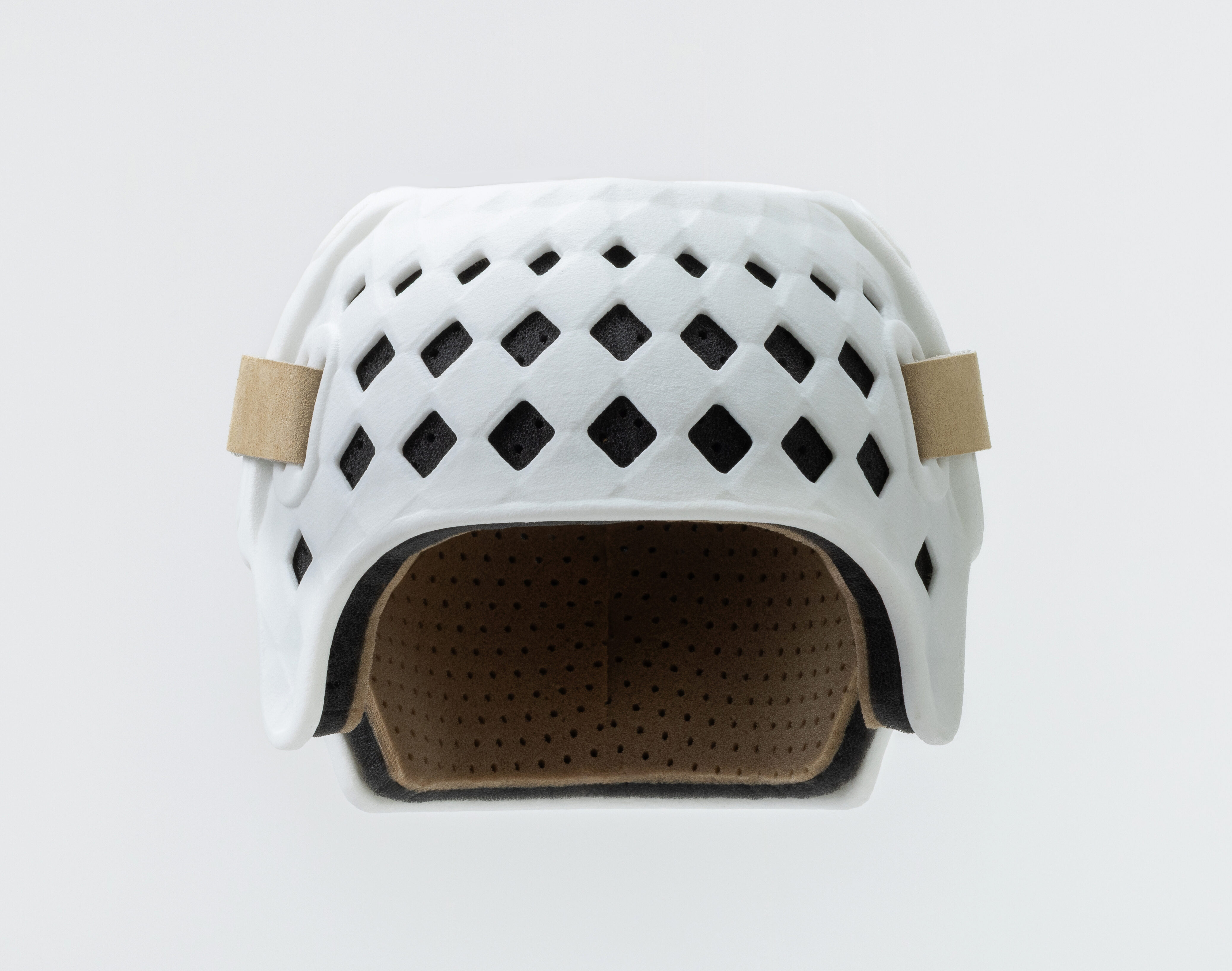 3Dスキャナーで赤ちゃんの頭のかたちを計測し、オーダーメイドのヘルメットであるアイメットを製造。アイメットは改良が進み、後継モデルの登場とともに販売は終了しました。